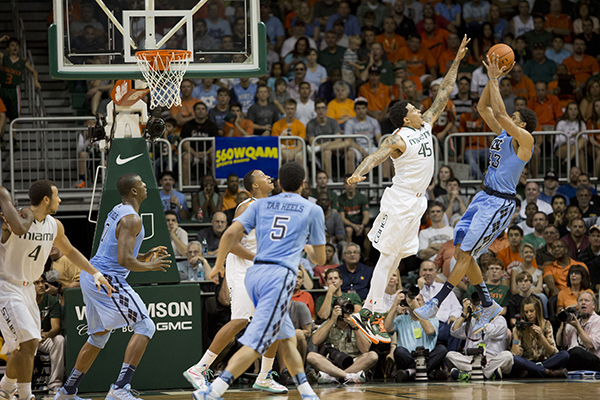 Miami shut down Carolina’s vaunted offense, which ranked third in the nation with 79.1 points per game. James Michael McAdoo leads the Tar Heels (16-7, 6-4 ACC) in scoring with 14.9 per game, but he managed just six points on 3-of-12 shooting.