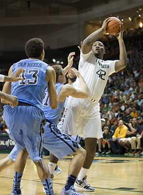 Hurricanes center Julian Gamble tallied four blocks and remained out of foul trouble as the anchor of a Miami defense that kept North Carolina off the free-throw line until well into the second half.