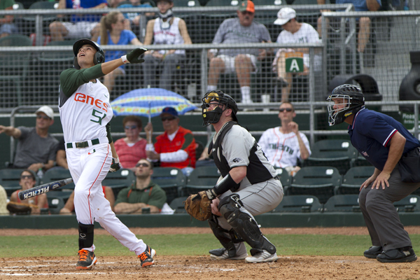 Miami scored five runs in the sixth and withstood Milwaukee’s push in the ninth to sweep its second consecutive series to open the 2013 season. The Canes held off the Panthers for a 7-6 win to carry its undefeated record to 7-0.