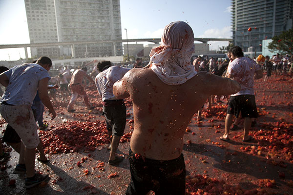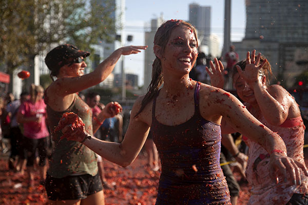 The idea comes from an annual tradition in Spain named “La Tomatina,” during which locals throw tomatoes at each other in the middle of the streets, just for fun.
