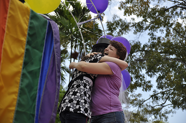 Wednesday afternoon SpectrUM hosted their Annual Marriages on the Rock as a part of their Pride Awareness Week. The symbolic marriages bring awareness to marriage equality for the LGBT community. Thursday night SpectrUM will also host a Drag Race on the Rock.