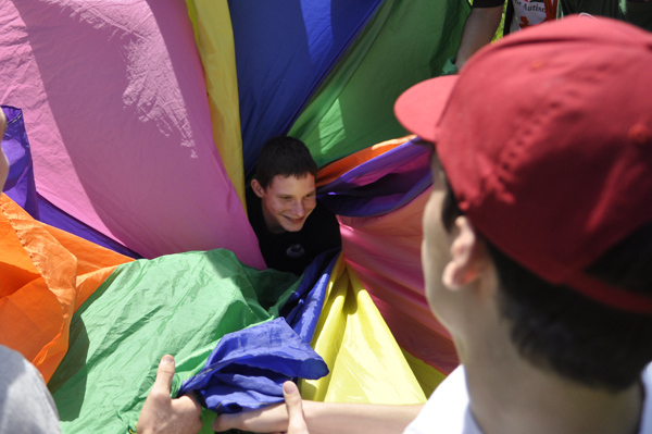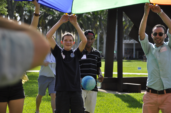 On Friday afternoon, the University of Miami hosted a field day for children and teens with autism in Miami. April is Autism Awareness Month and UM students had the opportunity to join the UM Center for Autism and Related Disabilities (CARD) at the UM Field Day for Teens. One child, Alex, took his turn sitting in the middle of a colorful parachute as volunteers and other autistic children spun him around. There were a variety of stations and activities including limbo, hula hoops and cornhole. UM students Robert Pursell and Lindsay Rosen spearheaded the event. Pursell organized this event with CARD to leave a lasting impression at the U. “I think it did a lot for not only the kids with autism, but also for the college kids who came out and had never worked with autistic kids before,” he said. “The ability to impact a child with autism is very powerful.” More than 100 UM students and 30 autistic children from the community came to campus to participate in the festivities.