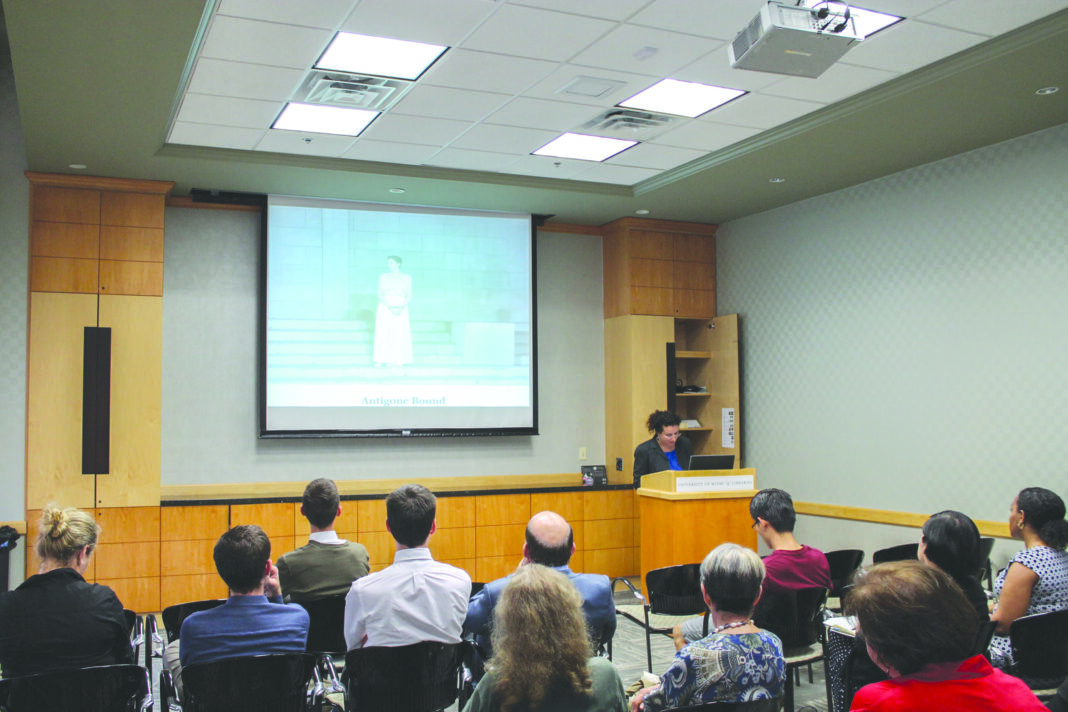Anastasia Bakogianni presented a fresh take on the nearly 2,500-year-old Greek play “Antigone” Monday at the University of Miami’s Richter Library.