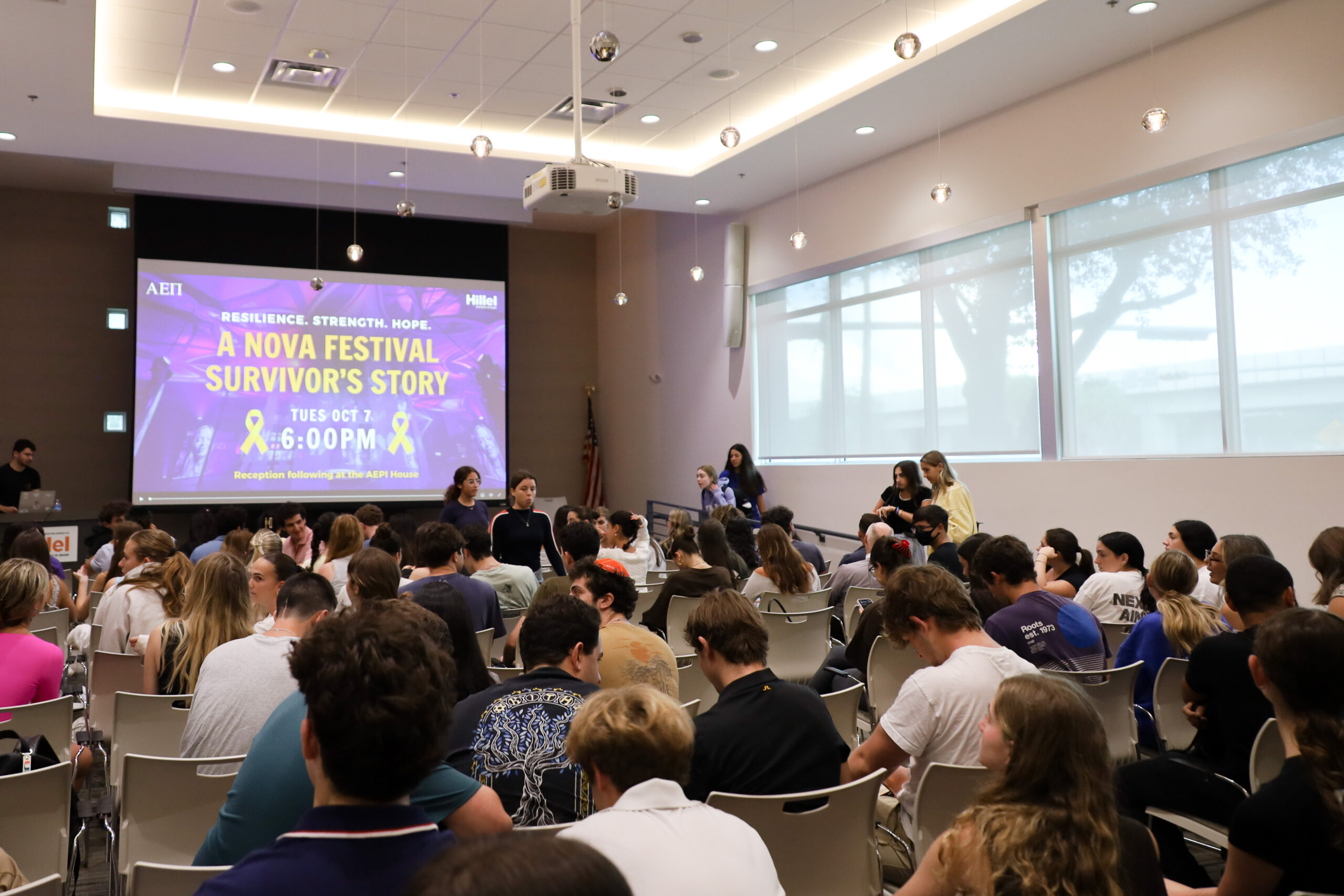 Nova Festival survivor Rotem Asner and UM student Eitan Pritzker, a former IDF lone soldier, shared their experiences from that day with those in attendance.