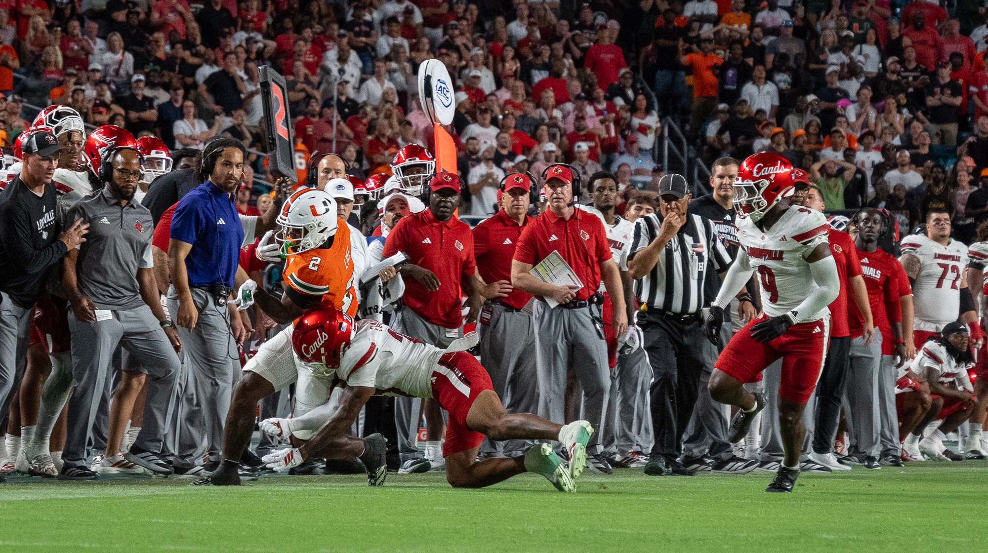 The Liberty City native led the team with 135 yards off nine receptions, averaging 15 yards per catch. Toney is as shifty as they come and that showed on the stat sheet as he had 104 yards after catch. A chunk of those yards came in the second quarter when Toney took a screen pass from Beck and turned it into a 61-yard gain, bringing Miami inside Louisville’s redzone.