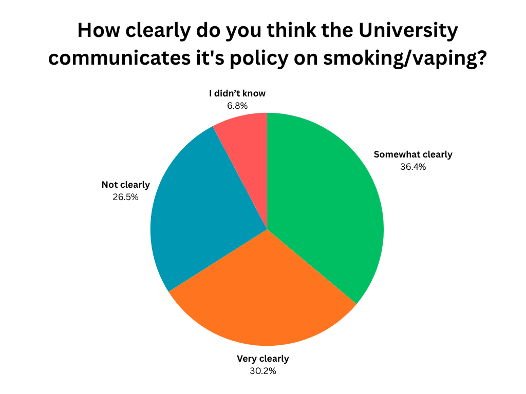 87% of survey takers are aware of the campus rules, but nearly 70% of responders feel that the exact policy and consequences could be communicated more clearly.