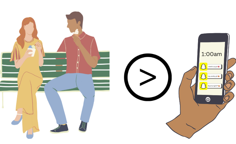 Yes, Snapchat was useful and fun in middle school, and maybe even in high school, but it’s time for guys to stop asking for your Snap and start asking you out on a real date.