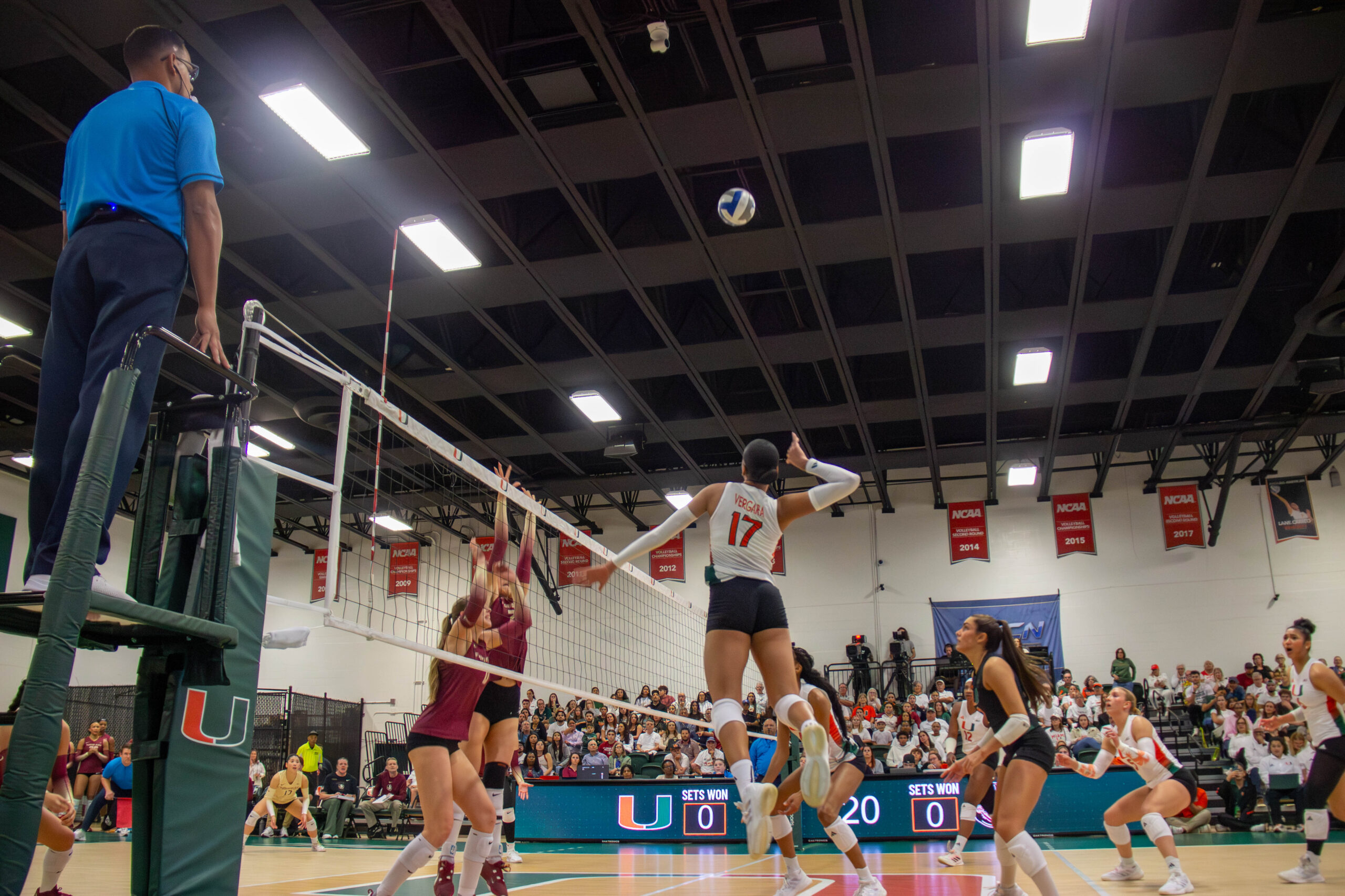 The final set opened with Florida State jumping ahead 8–4, but Miami refused to back down. Consecutive kills from freshman Sonja Danilovic helped the Hurricanes seal the match 15–10 after a reviewed call confirmed an FSU touch on a ball that sailed out of bounds.