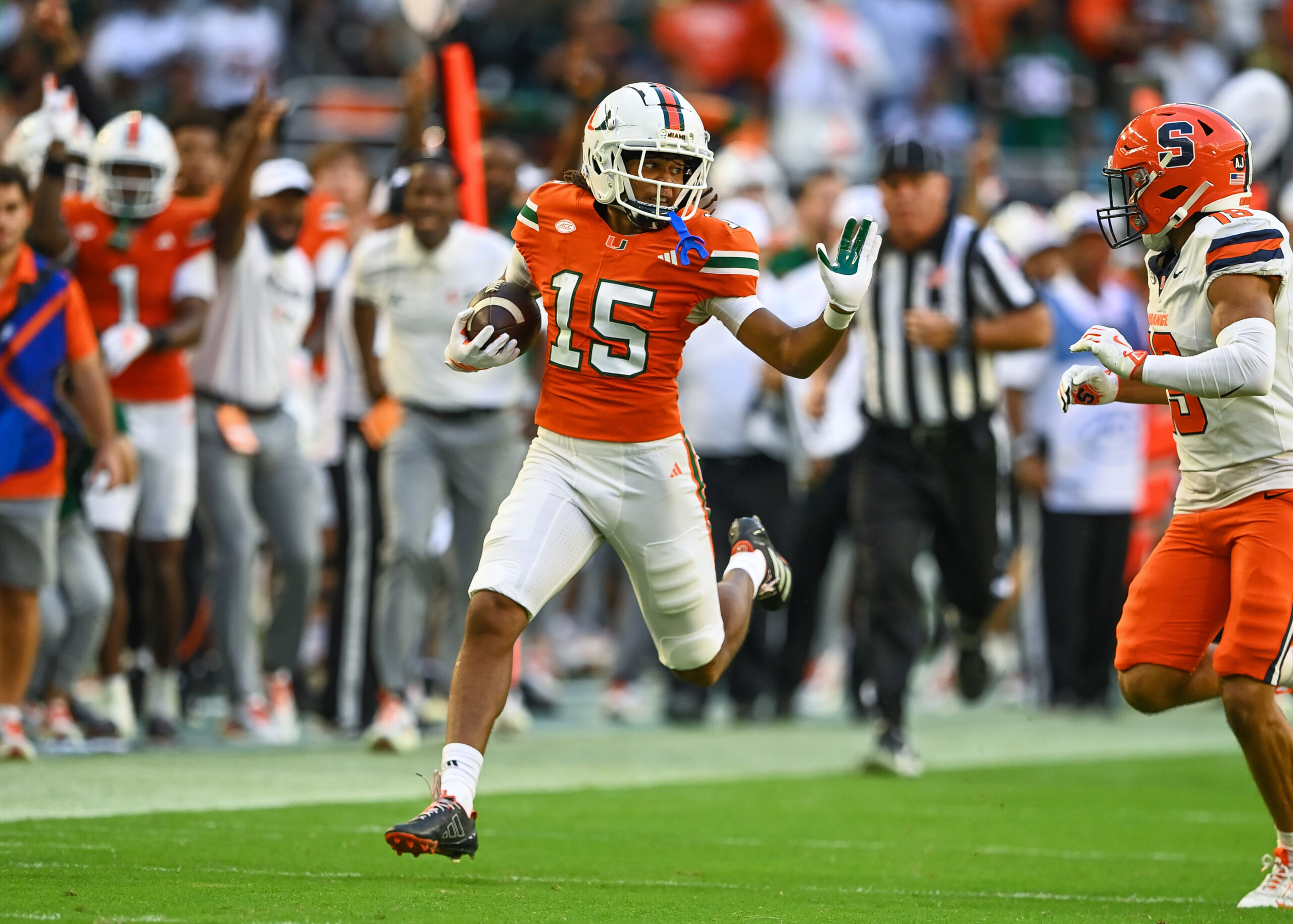 Scott is more of a big bruising back but, as he showed against Georgia Tech can make one cut and go as he did with a big 69-yard rush. The Hurricanes regardless are going to need to play fast and physical defensive football and are going to be really tested against this explosive offense and could let up their first 30 point game of the year.