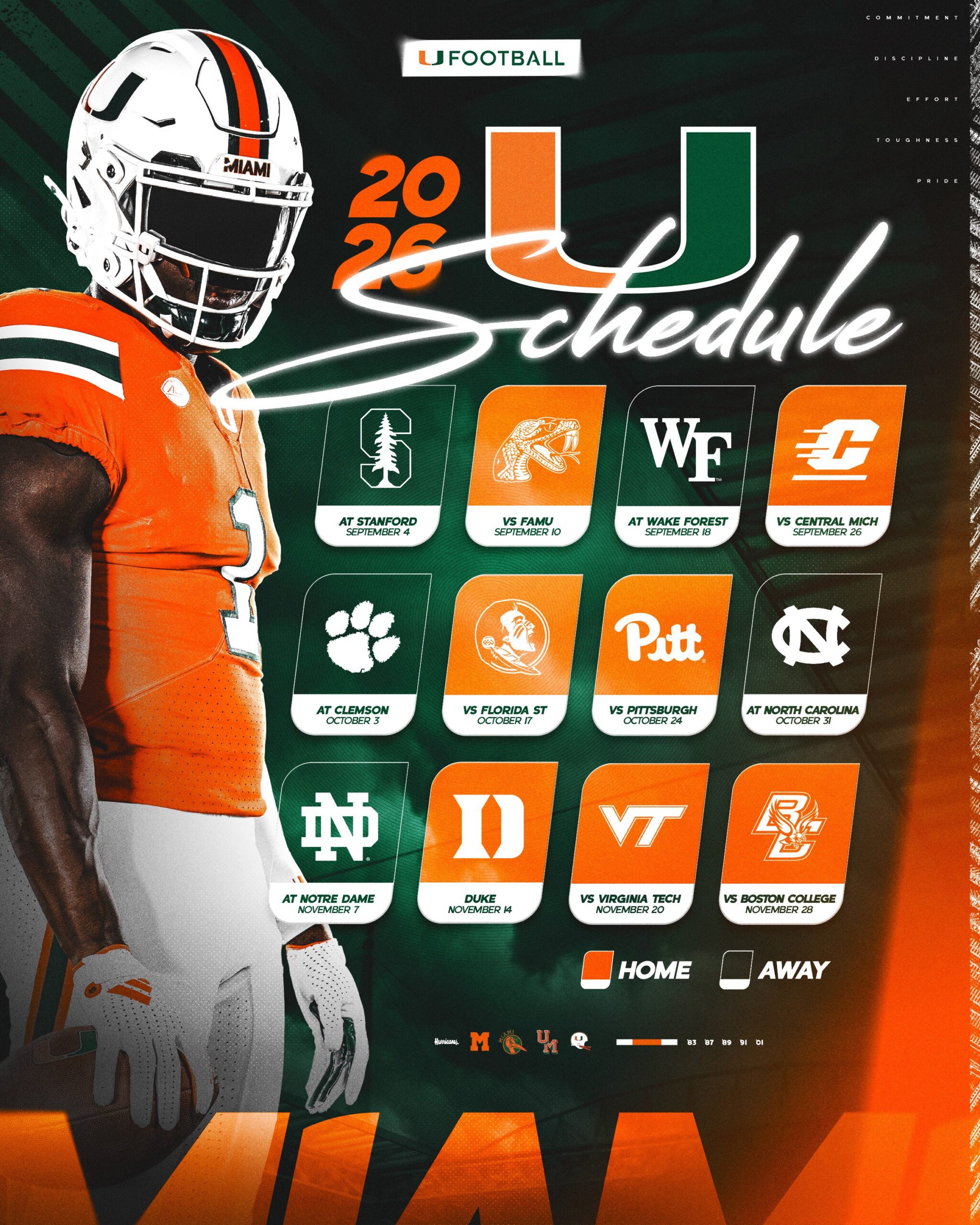 Miami’s first four weeks in 2026 are Stanford, Florida A&M, Wake Forest, and Central Michigan, opponents who finished with a combined 16-16 in conference play in the ACC, SWAC, and MAC in 2025.