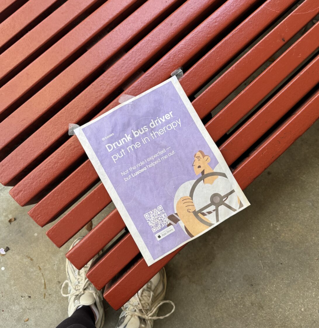 The fliers, which were first seen near the front entrance of Ungar by Hurricane reporters, read, “Drunk bus driver put me in therapy. The ride ended. The anxiety didn’t — but Lusaea helped me out.”