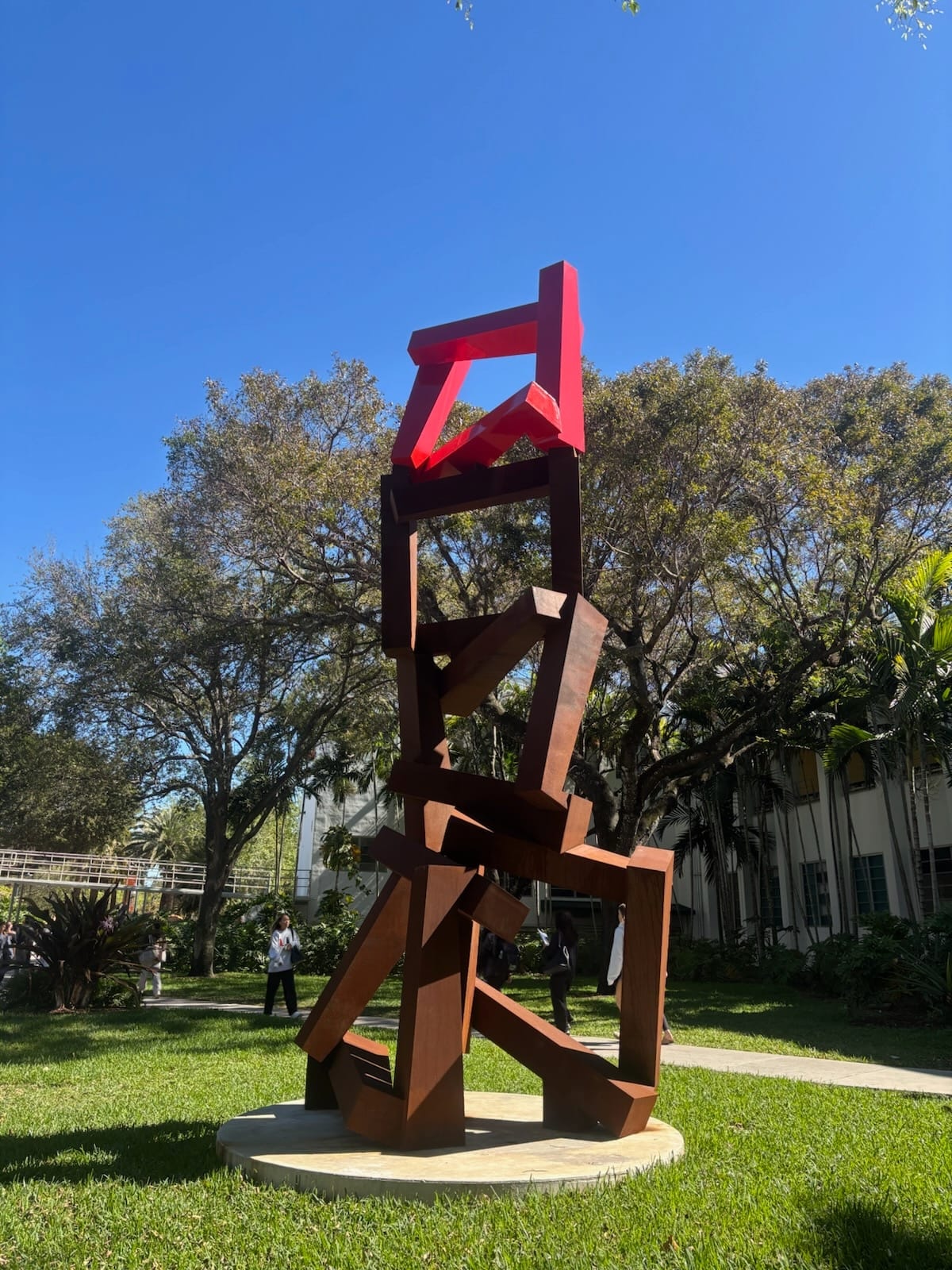A seven-meter steel sculpture titled “Chaos Herrirako Atea” by American sculptor Jedd Novatt has quietly appeared behind Merrick, becoming the newest addition to the University of Miami’s public art collection.