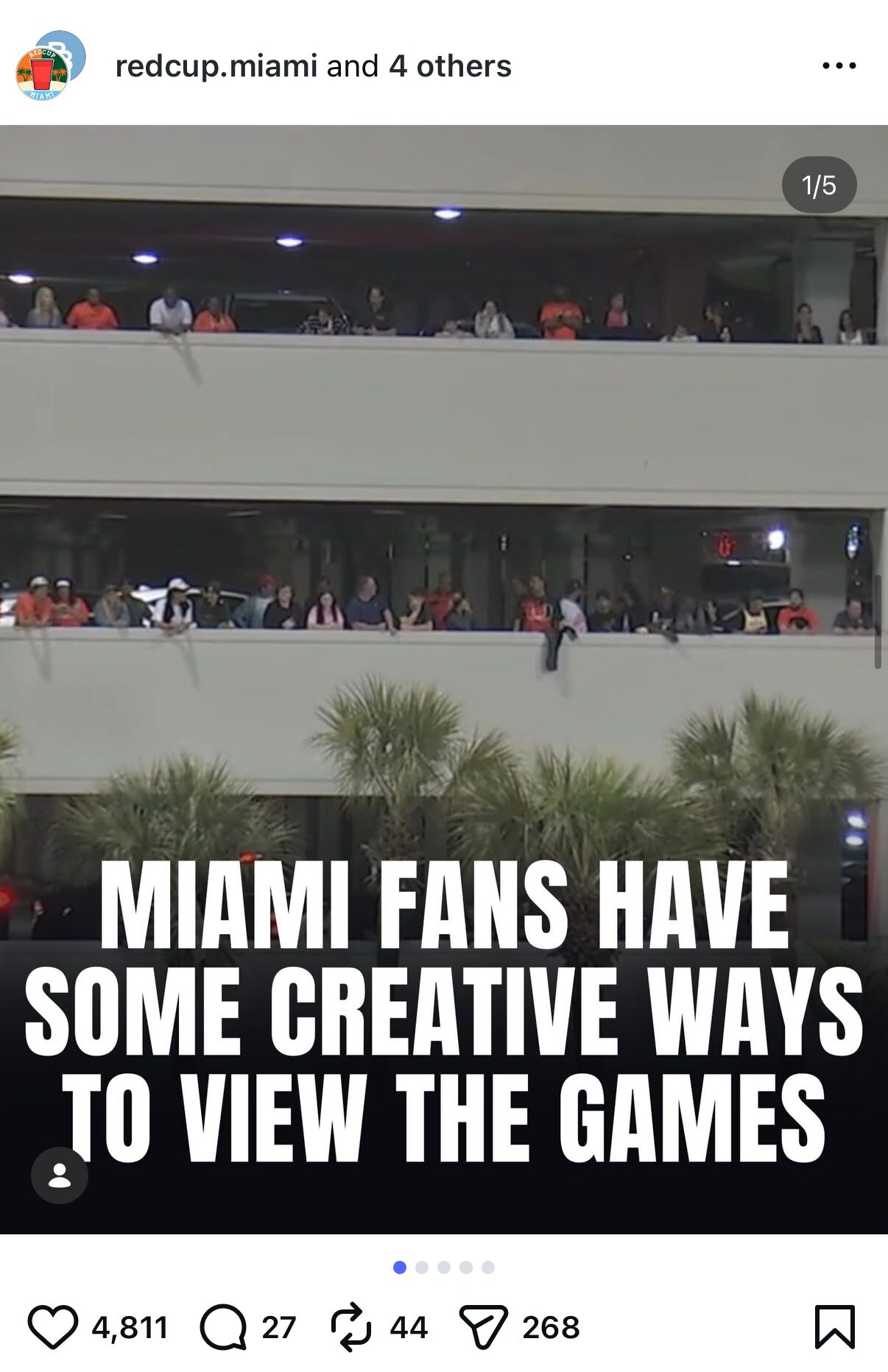 He originally got the idea from a post on the RedCup Miami Instagram account from Feb. 19 that featured photos of Canes fans watching the baseball game from various locations that are not the field, with the text “Miami Fans have some creative ways to view the games.” Multiple photos showcase fans standing on different levels of the Ponce de Leon Garage.