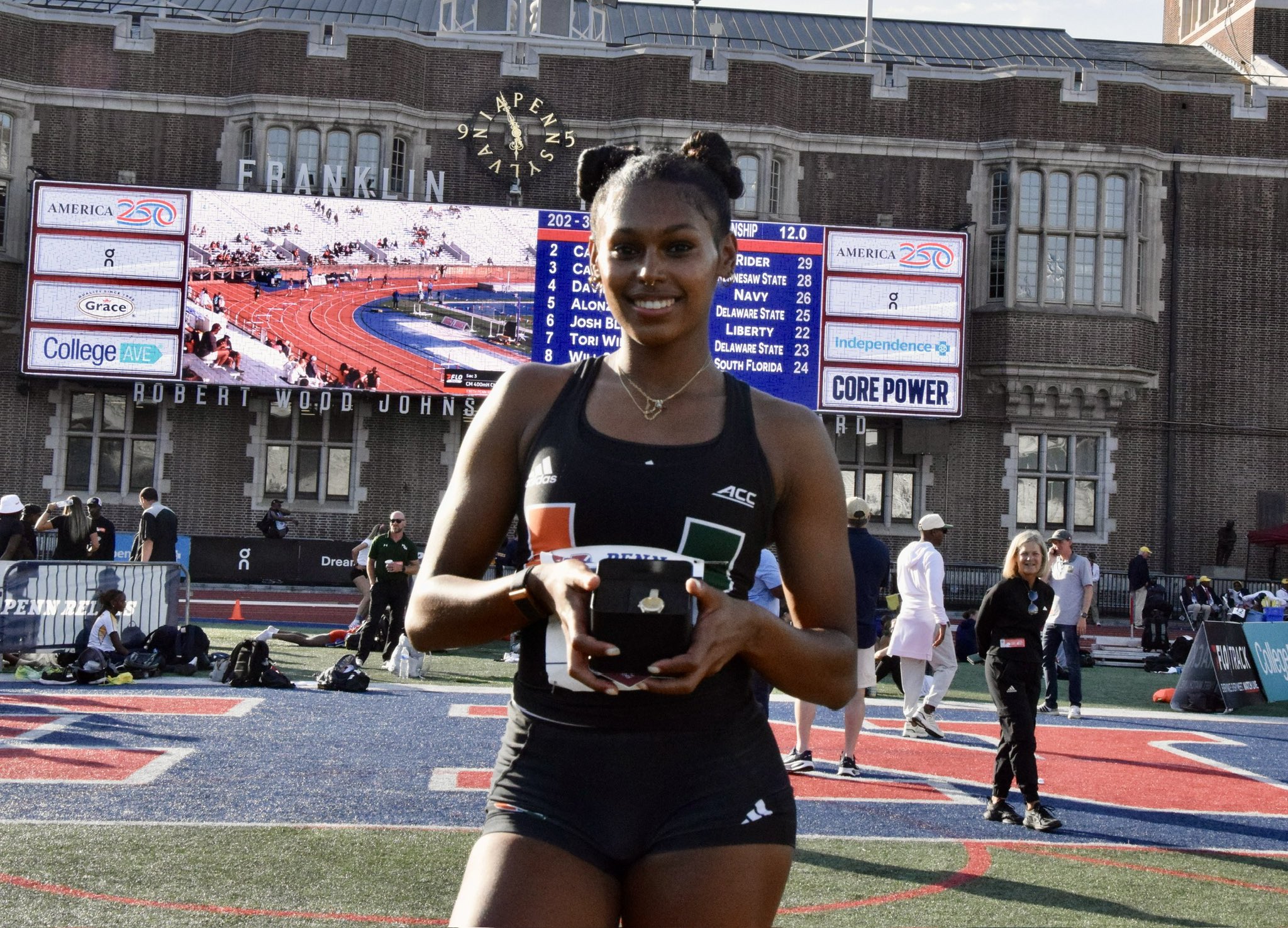 The victory marks just the third time a Hurricane has won the event at the Penn Relays, joining Dominique Darden (2006) and Tameka Jameson (2010).